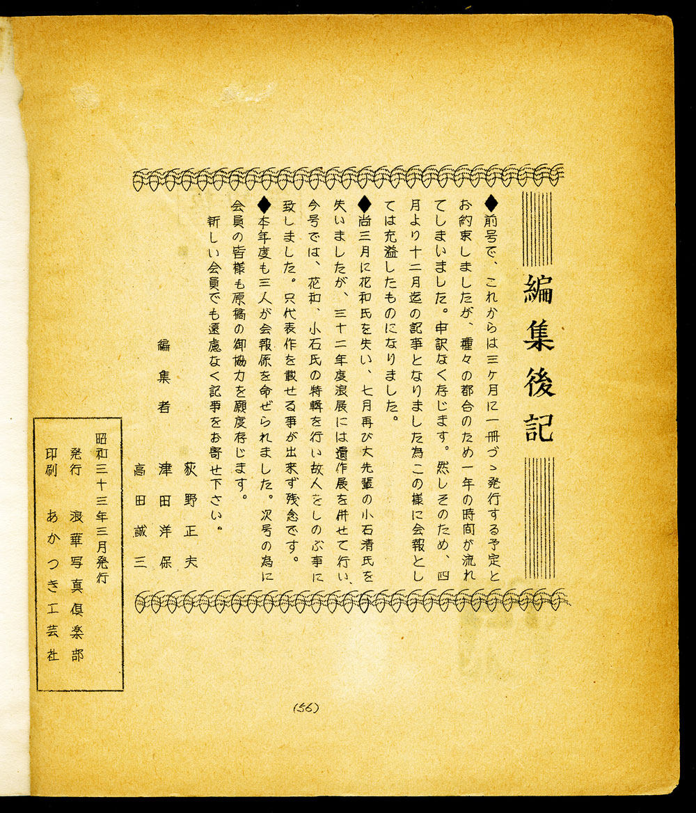 会報3号 1957 4~12 昭和33年3月発刊 56ページ