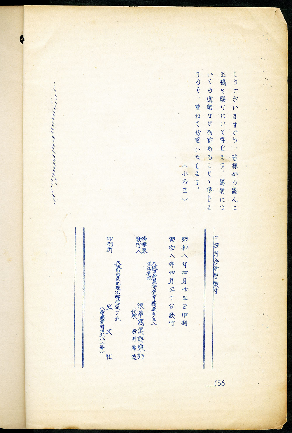 No.22 1933 APRIL 1・4月合併号 昭和8年4月30日 56 ページ